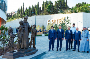 Возле центра инновационных образовательных технологий почетные гости открыли памятник архиепископу, выдающемуся хирургу и профессору медицины Луке Крымскому, в честь которого будет назван лагерь «Солнечный».