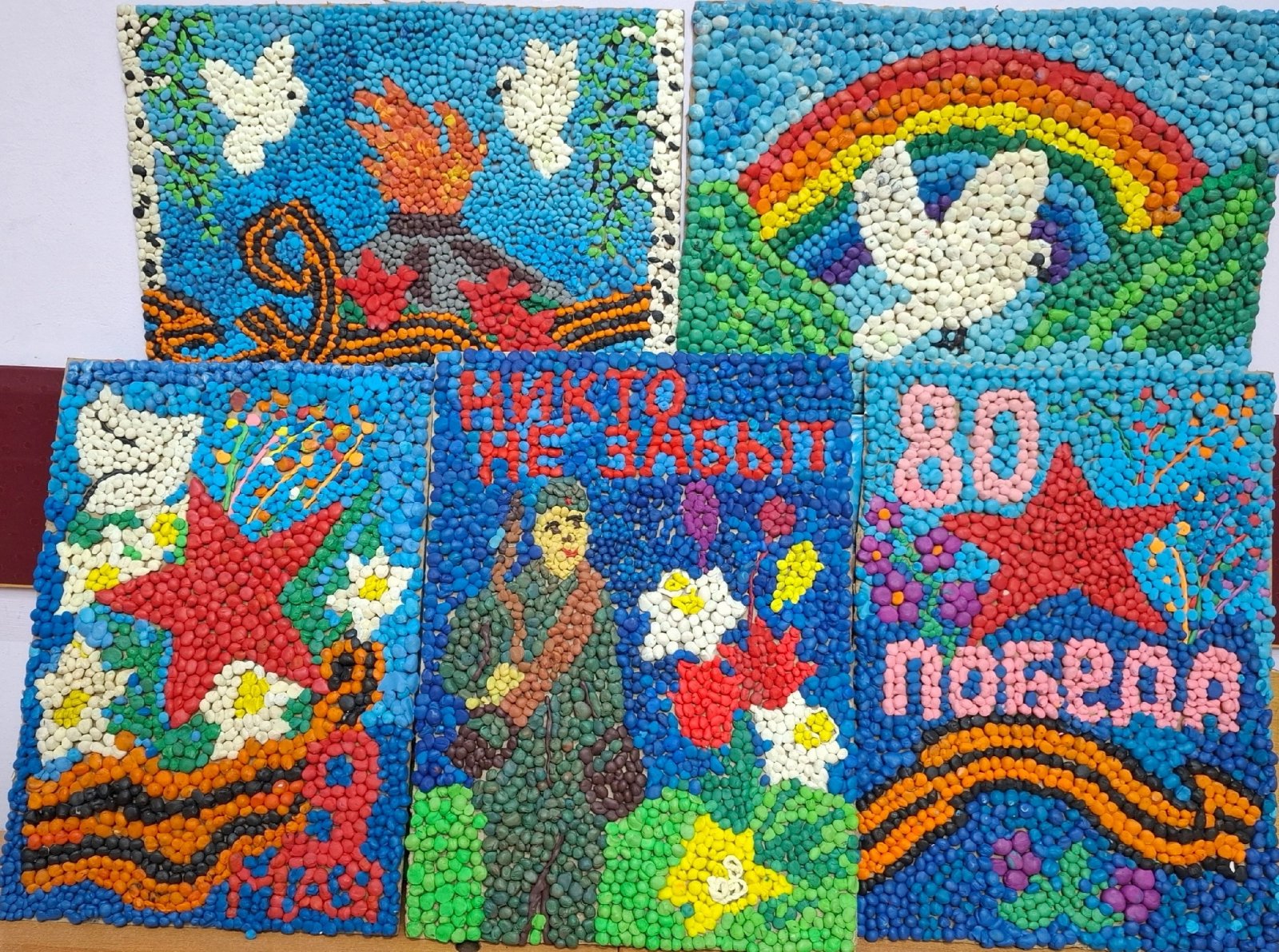 Скоро наступит очень знаменательный день — 9 мая. К 80-летию Победы в Великой Отечественной войне ребята студии "Дошколенок " (рук. Соколова Н.М.) смастерили коллективные работы.